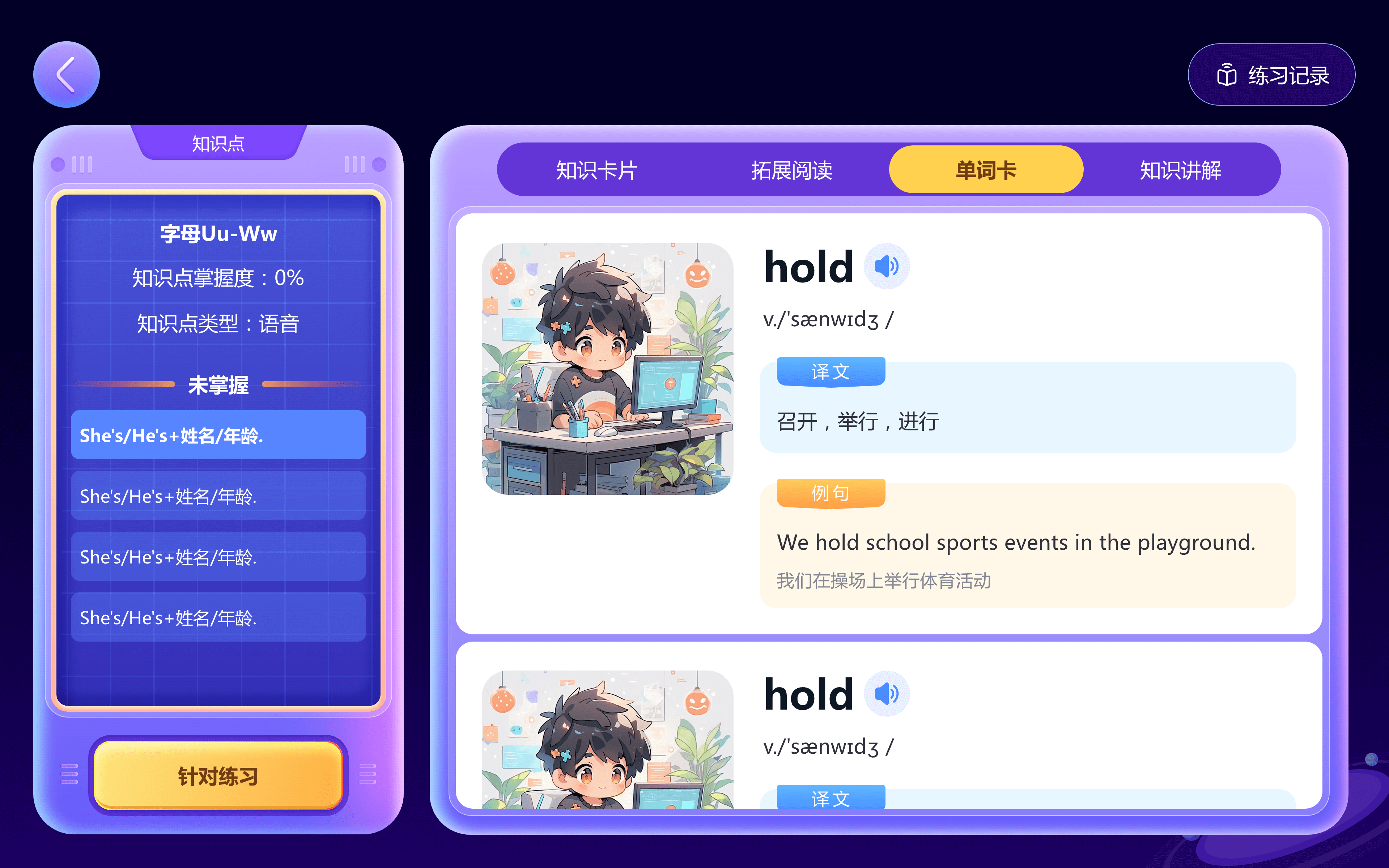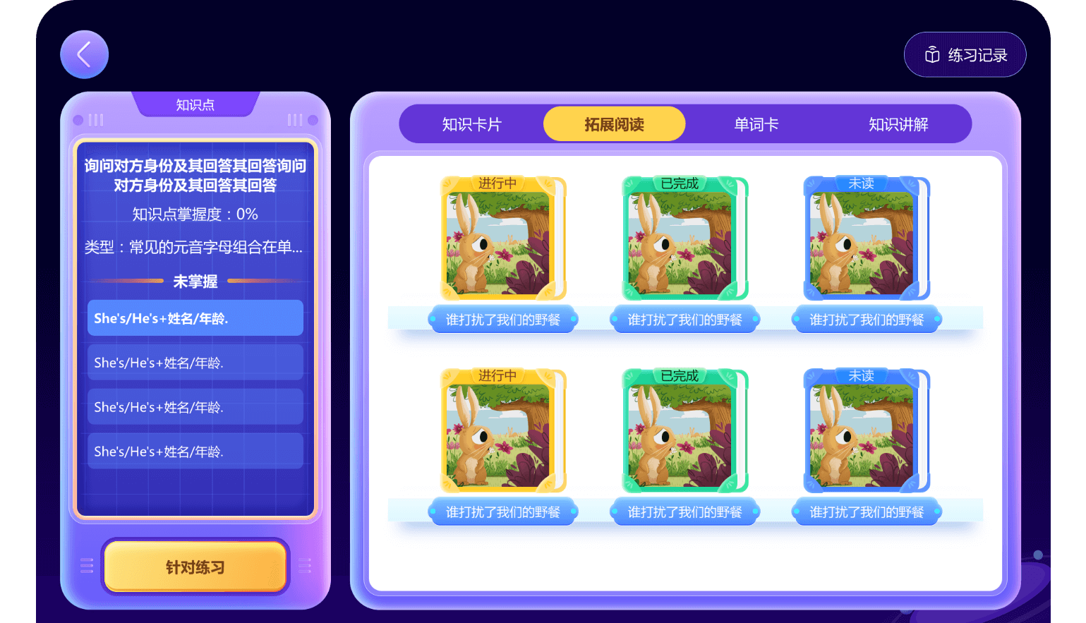 综合提升:完成专项练习后,整册进度和模块掌握率实时更新,逐步消除弱项
